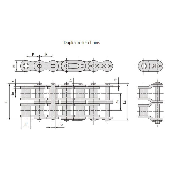 טבלה טכנית של שרשראות גלילה מדויקות עם מרווח קצר מסדרת B