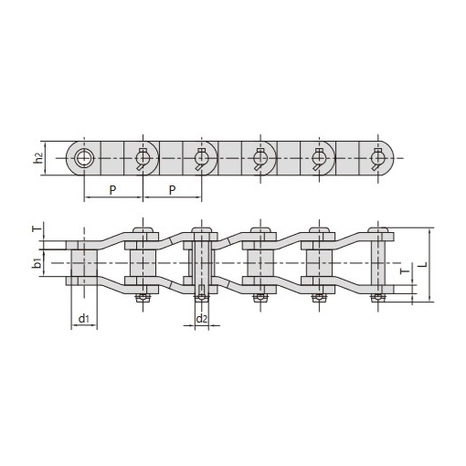 טבלה טכנית של שרשרת תמסורת עם חוליות מכופפות לעומסים כבדים