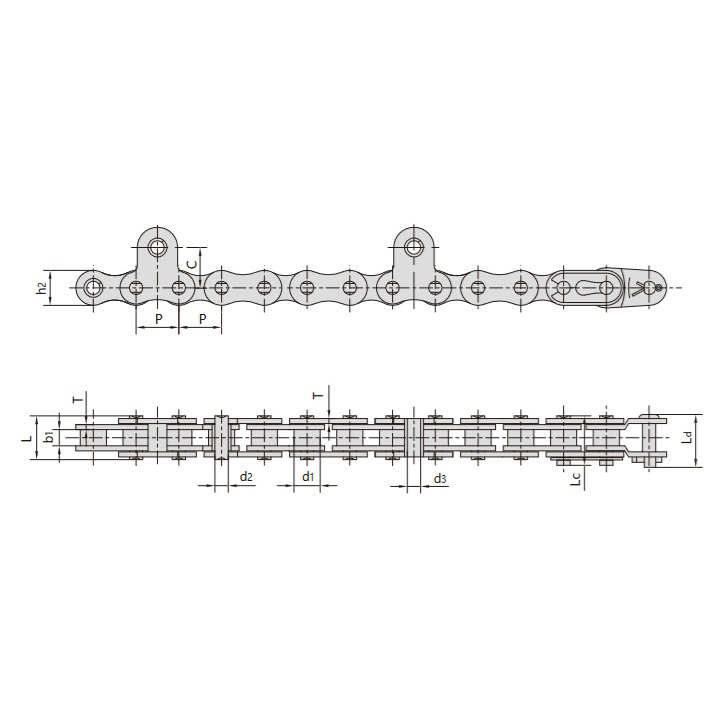 שרשראות לקציר אורז כוללות סדרת 415 של שרשראות הרמה עם תוספת אצבעות ושרשראות הזנה עם שיניים חדות במרווח של 33 מ"מ, 35 מ"מ וסדרות אחרות.